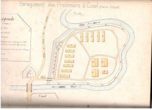 Manuscrit soigneusement calligraphié, illustré de 2 dessins hors texte à la plume, aquarellés : Baraquement des Prisonniers à Cosel (Haute-Silésie) et Vue du Camp des Prisonniers Français, plus la copie d'une carte de permission. Fondé sur des « souvenirs vécus et bien vivaces », le texte se compose de quatre parties : 29 octobre 1870. Sous Metz ; Voyage à travers l’Allemagne ; En captivité. Cosel (Haute-Silésie) ; Rentrée de captivité. L'auteur raconte le départ des prisonniers, leur marche vers l'Allemagne, la vie du camp, le sens du devoir et l'amour de la Patrie qui soutenaient les captifs, leurs épreuves physiques et morales, leur vie quotidienne, le röle des sous-officiers dans le maintien de la dignité des prisonniers, diverses anecdotes touchantes. Enfin rapatrié à Lunéville, il en appelle à une revanche : « Les tortures endurées, les humiliations subies, ont fait une plaie qui ne pourra être cicatrisée que le jour où le Dieu de la Victoire ramènera les couleurs nationales sur le clocher de la vieille cité Messine »... On joint une édition d'Aucassin und Nicolette, trad. en allemand par Erwin Rieger et illustrée par Rudolf Junk (Vienne, Avalun-Druck, 1919), n° I/5 sur Japon au nom du collectionneur Heinrich Stinnes (in-fol., rel.).