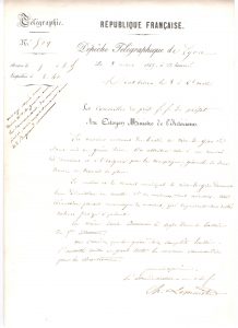 Diverses dépêches télégraphiques émises depuis Toulon, Marseille ou Lyon, par des administrateurs à l'attention des ministres de la Guerre, de l'Intérieur ou de la Marine. Rapports sur les rébellions à Livourne chassant le Grand-Duc de Toscane (inquiétudes face au manque d'effectifs dans les corps expéditionnaires, question sur le départ de volontaires pour l'Italie, etc.) ; sur les grèves de mineurs à Rive-de-Gier ; sur le passage de Charles-Albert de Sardaigne à Antibes ; annonce de la nomination de Massimo d'Azeglio comme premier ministre et ministre des affaires étrangères...