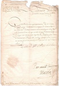 Certificat de service pour le Sieur de Passy « Lieutenant de la compagnie de chevaux légers du Sieur de St Jullien Reaumont ». On joint 6 lettres du prêtre Mévolhon à divers (1789-1825). Plus une lettre de 1800 à propos d'un hymne, et un congé militaire (Armée du Nord, 1810).