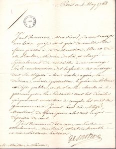 4 mai 1768, au sujet de la publication d'un ouvrage de Raulin, « Médecin du Roi, et chargé spécialement de travailler à un ouvrage sur la conservation des enfants » et dont « Sa Majesté a bien voulu agréer la dédicace ». 19 octobre 1770, il va s'occuper du mémoire remis par son correspondant.