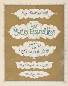 BOUTROS GHALI Wacyf. Les perles éparpillées. Paris, Chulliat 1923; in-4 maroquin rouge, filet doré et listel en maroquin vert en encadrement, dos à 4 nerfs orné de motifs mosaïqués, filets intérieur, tête dorée, non rogné, couverture et...