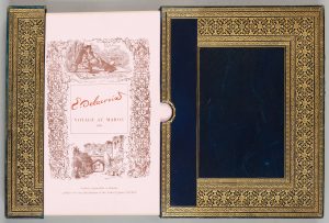 exemplaires et justifié, avec un portrait de l'artiste en frontispice, une page de titre richement ornée, 30 planches hors-texte sous serpentes légendées dont 5 en couleurs ainsi que des dessins dans le texte; monté sur onglet, texte central dans un cadre de filet rouge avec une belle typographie. Edition originale. Exemplaire sous étui en maroquin bleu richement orné de décors mauresques à l'or, reliure marocaine.