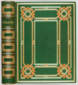 LIVRE CONTENANT LES CURIOSITES DES CURIOSITES DINET (E.) & BEN IBRAHIM (S.) Mirages. Scènes de la vie Arabe. Paris, Piazza 1906; in-8; - Reliure d'époque, plein maroquin vert à décor de listels d'encadrement, vert amande, beige et corail, formant...