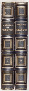 LENZ Oscar. Timbouctou. Voyage au Maroc, au Sahara et au Soudan. Paris; Hachette 1886-1887; 2 volumes In 8 demi chagrin bleu nuit, dos à faux nerfs et caisson dorés, tranches dorées; avec 27 gravures sur bois in et hors-texte, certaines...