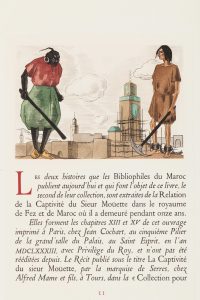 MOUETTE (Germain). Les aventures de deux captifs François dans le royaume de Fez et de Maroc. Casablanca, Société des bibliophiles du Maroc; 1934 in-4 en feuilles sous couverture illustrée d'une vignette couleurs et double emboitage vert de...