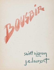 BOUSBIR SAINT-AIGNAN & J.-E. LAURENT. Bousbir. Rabat, Edition d'art J. E. Laurent 1950; in-4 en feuilles sous double couverture et chemise en liège à rabats de jute. Tiré à 257 exemplaires, celui-ci 1 des 250 portant le n°7, ornée de 40...
