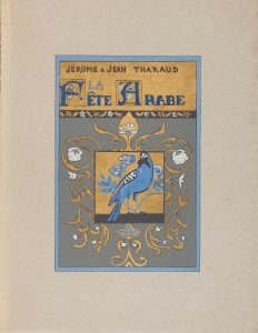 AVEC UNE AQUARELLE ORIGINALE THARAUD Jérome et Jean. La fête Arabe. Paris, Lapina 1926; in-4 br. couverture illustrée couleurs et rmpliée, sous étui; 32 gravures de Suréda gravés par Aubert, dont la couverture en couleurs, 11 en-têtes avec...