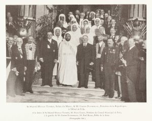 WEISS René. Réception à l'Hotel de ville de Sa Majesté Moulay Youssef, Sultan du Maroc. Inauguration de l'Institut musulman et de la Mosquée. Paris, Imp. Nat. 1927, in-4 broché couverture rempliée sous chemise en percaline, 96 pages...