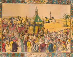 LE MAHMAL. La caravane égyptienne se dirigeant vers la Mecque. Chromolithographie; 38 x 28 cm à vue, encadré sous verre, bel état de fraicheur.