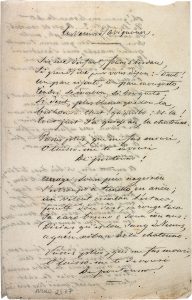 Gordes 4 mai 1853. Il écrit à Roumanille, en provençal, une lettre amicale et pleine de verve, et il illustre son propos par une fable (56 vers) : « I’aviè na fes un rei »… 24 mai 1855. Il lui envoie un court poème de 4 vers intitulé Mandadou, qu’il a retrouvé ; « mon cher troubadour, fais-en ce que tu voudras »... Avignon 5 novembre 1864. Querelle entre Roumanille et Aubanel, qui reproche au libraire d’avoir appliqué « le rabais de 10% sur la totalité des exemplaires ». Certain que c’est une erreur involontaire de sa part, il lui demande de corriger les chiffres et de le régler : « Au fond, tu conviendras avec moi que je suis très bon enfant, car tu me traites un peu comme un étranger, et je ne me fache pas, et aussi parce que je me laisse imposer une condition que n’a point subi Mistral »... Avignon 28 août 1872. Aubanel se demande s’il est le débiteur de Bourdillat pour des exemplaires de Miougrano payés par lui et retirés, après la faillite de la maison... La Venus d’Avignoun. Beau poème en provençal de 11 strophes, avec ce refrain suivant : « Passes plus, que me fas mouri, / O laisso-me te devouri / De poutouno ! » (laisse-moi te dévorer de baisers !)... À l’amiga que n’ai jamai veis. Beau poème d’amour en provençal à l’amie qu’il n’a jamais vue.