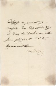 Honoré de BALZAC (1799-1850). P.A.S. « de Balzac » ; demi-page in-8 (au verso traces de collage).