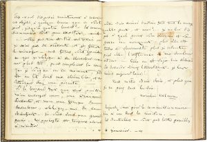Très belle et affectueuse correspondance à une autre poétesse, co-directrice et rédactrice, avec son mari, Juste Olivier,de la Revue Suisse, avant de s’établir à Paris ; la « chère Olivier » (1803-1879) y devint la confidente des soucis et des chagrins de Marceline. Nous ne pouvons donner ici qu’un rapide aperçu de cette . 29 mars 1842, au sujet de la réponse de l’éditeur Picard (pour le manuscrit de Madame de Flers de Caroline Olivier) et des « frais de l’impression du volume qui devrait être payé si cher si nous ne vivions pas à une époque bien étrange »... Orléans 19 juillet 1842. Elle regrette son absence : « j’aurai partout de la douceur à me retracer votre charmant visage et votre nom doux et honoré ». Elle évoque leur ami Sainte-Beuve, « pour vous porter la part de mon cœur d’où vous ne serez jamais effacée. Je désire aller un jour à Rome pour Rome ; quant à la Suisse, Madame, je désire y aller pour vous. Genève nous a reçus en nous criant : à bas les Français. Mais je suis sûre que votre douce voix de montagne ne nous dirait pas : à bas les amis ! »... Paris 11 juin [1845]. Charmante évocation du fils de sa correspondante. Puis elle dit ses inquiétudes pour son mari Prosper Valmore après la faillite de l’Odéon : « Nous sommes déçus, et jusqu’à l’Odéon, où nous avions essayé du moins d’attendre l’avenir, l’Odéon nous ferme tout asyle, et nous nous en allons, sans savoir où »... 19 juillet. « On dirait que Paris se rétrécit à force qu’il s’emplit peut-être il n’a pas une place possible pour nous [...]. Le rêve pur et profond que j’avais fait relativement à vous est mort [...]. Qu’il vous suffise de savoir que nous n’avons trouvé d’appui nulle part, que nous nous en allons forcément en septembre »... 21 novembre. Elle s’enquiert de la santé du fils de son amie... 6 février 1846. Demande de précisions au sujet du cabinet de lecture de la rue Dauphine… « Rien ne change pour nous, rien ne s’éclaire »... 17 novembre. Lettre pathétique alors qu’elle est au chevet de sa fille Inès (qui mourra le 4 décembre) : « Mon cœur se referme sur toutes ses terreurs. Non – je ne ferai participer personne à de telles angoisses, vous les devinez trop. [...] On ne peut que ramper jour par jour, nuit par nuit sous cette tâche […] Mon cher mari absent souffre aussi beaucoup »... 6 janvier 1847. Sur les Chansons lointaines de Juste Olivier : « J’ai lu les chants et l’âme de votre cher Olivier. Que de perles fines et que de larmes secrètes dans ce précieux recueil ! […] C’est Dieu qui visite ma consternation. […] Notre position est très entravée – je n’ai pas de servante et je fais le ménage. Mes forces sont épuisées. […] Notre bien aimée Ondine fait tout le courage qu’elle peut […] plus elle est tendre et charmante, plus je redoute pour elle l’influence de ma douleur intime »... [12 ? janvier]. « Tout se hérisse de tristesse. Pourtant qu’un vray rayon vous entre au cœur ! » : son fils Hippolyte est admis comme fonctionnaire au ministère de l’Instruction publique. 23 janvier. La nomination d’Hippolyte est un « événement auquel Monsieur de Salvandy a mis une grâce de cœur qui en double le prix. Il est vrai que dès long-tems Monsieur Ste Beuve avait préparé ce bon vouloir »... Elle n’a toujours pas d’appartement… « Mon cher mari dans son exil, lit et relit sans relâche l’Imitation, et rien ne peut le résigner à vivre sans nous ! ni moi, sans lui ! »… 27 mai. Demande de service pour de vieux meubles entreposés chez Mme Henriette Geille. « J’ai vu hier notre Ondine charmante et courageuse. Quelle fermeté d’âme avec l’air d’un enfant ! On l’adore dans l’heureuse maison qui la possède [l’Institution Bascans]. Mais quoi pour l’avenir ? »... Mardi soir [25] janvier 1848. Elle a bien eu quelques amis heureux, mais elle n’en a plus : « Les uns sont aussi touchés d’infortunes, comme nous les autres ont trouvé que c’était bien triste d’en être témoins. Le chagrin que j’en ressens n’est pas énergique, je suis trop accablée pour cela, mais c’est un étonnement mêlé à ces larmes intarissables qui font que ma vie est si changée ! changée comme l’univers où je ne reconnois plus rien »... [24 février]. « Sommes-nous vivans ? Un mot qui me calme, je vous en prie, femme bien aimée. Mon cœur s’élance de toutes parts. […] Tout cela s’est fait comme entre ciel et terre. Dieu soufflait ! »... 25 juin : « J’ai rêvé de vous toute la nuit si troublée ! Vos images traversent toutes ces scènes de douleur »… 3 septembre « Après avoir pressé de mes lèvres maternelles le nom de Mickiewicz je me décide péniblement à vous le rendre, […] et ce trésor rentrera dans vos mains »... 9 septembre. Compte rendu des démarches d’Hippolyte en faveur de Juste Olivier au ministère, et en vue du « plan » de M. Carnot ; Léon Halévy recommande de faire appuyer la demande par Sainte-Beuve et Jean Reynaud... 14 septembre. Une suite positive sera donnée à la demande de J. Olivier ; mais « les paroles d’Hippolyte m’échappent, car tout ce qui est d’administration et de science me rend stupéfaite »... 27 juin 1849. Elle n’a rien reçu de sa part, et elle a perdu un ami d’enfance : « les genoux tremblent sous tant de douleurs »... 16 octobre 1849. « Je vous envoie le précieux fragment [...]. Gardez ce trésor qui n’eût été souhaitable que si deux volontés réunies me l’eussent destiné »... 20 octobre, à propos des Anges de la famille : « J’ai une ombre d’espoir pour le livre d’enfans. Si vous pouvez m’envoyer le manuscrit, ce serait bien m’obliger »... [Novembre]. Ondine a été très malade et reste faible. « J’ai eu sur elle un grand saisissement. Son bon frère ne sort qu’à sept heures de son coin du cabinet. [...] Mon cher mar