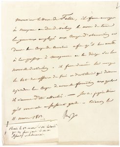 NAPOLÉON Ier. L.S. « Nap », Trianon 11 mars 1813, au duc de Feltre ; la lettre est écrite par le baron Fain ; 1 page in-4. Préparatifs de la campagne d’Allemagne.