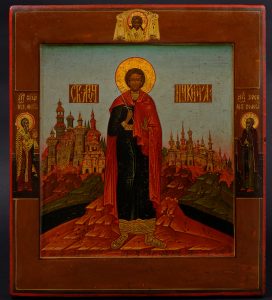 Saint Nikita. Russie, probablement Mstera, XIXe siècle. Tempera sur bois. 35 x 31 cm. Святой Никита. Россия, Мстера, XIXв. Дерево, темпера, 35 х 31 см.