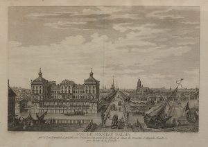 palais « près la Porte Triomphale d’Anitschki vers l’Orient, avec une partie de la Ville, et du chemin du monastère d’Alexandre Nevsky, prise du côté de la Fontanka. »