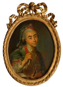 Parmi tous les portraits censés représenter le chevalier d’Eon, celui-ci est le certainement le plus ancien, le plus affirmé et le seul qui bénéficie d’une tradition familiale ininterrompue, ainsi qu’en atteste le cartel apposé sur le cadre.