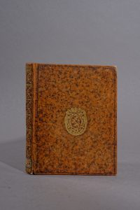 Том in-4°, в кожаном переплете из мраморного базана, золотой герб в центре крышек, красный обрез. Переплет XVIIIв.