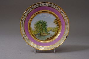 Тарелка с изображением Храма Аполлона и каскада в Павловском парке.