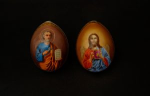 Одна сторона яйца украшена росписью " Христос Вседержитель";