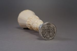 Sceau héraldique du prince Demidoff. Italie (?), vers 1860. Matrice gravée, en argent ; manche en ivoire ouvragé et ciselé. Hauteur : 14,2 cm. Poids total : 169 grammes. Anatole Nikolaiévitch Demidoff (1813-1870),, prince de San Donato, fut un...