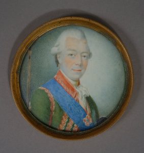 École russe, d’après Alexandre Roslin. Portrait du comte Zakhar Tchernicheff. Fin du XVIIIe siècle. Miniature sur ivoire (6 cm à la vue) ; dans un cerclage de laiton, sous verre. Le comte Tchernicheff (Tchernichev, Chernyshev) (1718-1793) est...