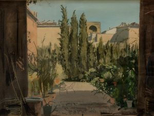 Dimitri Bouchène. Cour et jardin d’une villa italienne. Florence, 1930. Pastel sur papier (45 x 60 cm à la vue) ; sous vitre, dans un cadre de loupe. Signé & daté en bas à droite. Дмитрий БУШЕН ( 1893-1993 )....