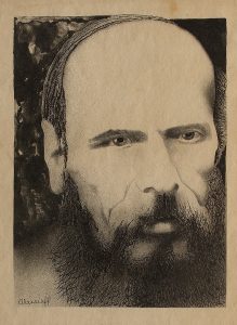 Alexandre Alexeïeff. Portrait de Feodor Mikhailovitch Dostoievsky. Vers 1930. Estampe (31,5 x 24 cm) ; signée dans la plaque, en bas à gauche. Quelques taches marginales n’affectant pas la gravure. Александр АЛЕКСЕЕВ....