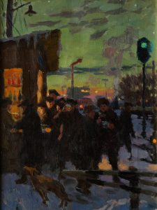 Georgy Satel. La distribution de bière au petit matin. Vers 1957. Huile sur toile, 40 x 30,5 cm, dans un cadre moderne. Георгий Сатель. За кружкой пива. Ок.1957. Холст, масло, 40 х 30,5 см, в...