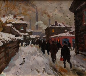 Georgy Satel. Vers l’usine. Vers 1959. Huile sur carton, monté sur isorel, 27 x 29 cm, dans un cadre moderne. Георгий Сатель. Заводской пейзаж. Ок.1959. Оргалит, масло, 27 х 29 см, в...