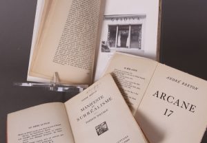 Paris, Les Editions du Sagittaire, 1953. In-8 (22,7 x 14,3), broché, jaquette illustrée en couleurs par Joàn Miro. Illustré. Exemplaire courant de l'édition originale. En bonne condition. Joint : BRETON (A.) Arcane 17. Brentano's, 1945. Petit in-8 (19 x 12), broché. Exemplaire de la première édition après l'édition originale à tirage limité. Bon exemplaire. Joint : BRETON (A.) Manifeste du surréalisme. Poisson soluble. Paris, Aux Editions du Sagittaire, 1924. Petit in-8, broché.