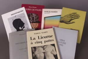 Bruxelles, Les Lèvres Nues, 1986. In-8 (21 x 14,5), broché. Envoi autographe signé de Marcel Mariën à Evelyn et Georges Deknop. Enrichi de deux documents. Bel exemplaire. Joint : MARIËN (M.) Héraclitorismes. Bruxelles, Les Lèvres Nues, 1979. Plaquette in-8, brochée. Envoi autographe signé de Marcel Mariën à Evelyn et Georges Deknop. Enrichi d'un document. Bel exemplaire. Joint : MARIËN (M.) Figures de poupe. Paris, Jean-Claude Simoën, 1979. Plaquette in-8, brochée, jaquette. Envoi autographe signé de Marcel Mariën à Evelyn et Georges Deknop. Bel exemplaire. Joint : MARIËN (M.) Trattato della pittura ad olio e aceto. Plaquette in-8, brochée. Iaquette. Envoi autographe signé de Marcel Mariën à Evelyn et Georges Deknop. Bel exemplaire. Joint : 2 ouvrages (Tout reste à dire de Mariën; Marcel Mariën, Werke, 1937-1978, Köln).