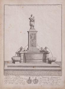 Joseph DREPPE (1737-1810), d'après Jean DELCOUR. Fontaine de la Vierge sur la Place St Paul à Liege. Ens. 3 pièces.