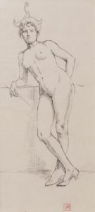 Armand RASSENFOSSE. Nu debout à la coiffe cornue.
