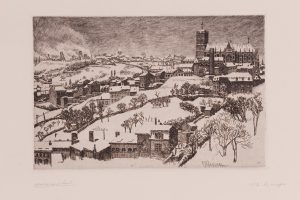 Dessin à l'encre de Chine sur papier 28 x 23. Signé "A. D." en bas à gauche. Cachet ex-libris Georges Brassinne au verso. Joint : François MARECHAL. La Neige. 1914. Eau-forte, 19,5 x 29,5. Marges. Signée "Fçois Maréchal" et titrée au crayon en dessous. Très fraîche.