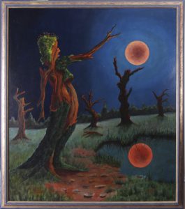 Huile sur panneau, 78 x 70. Signée "M. Lachapelle" en bas à droite. Contresignée et titrée au dos. Encadrée. Peintre et dessinateur né à Leval-Trahegnies en 1910. Il étudia aux Académies deGand et de Bruxelles (Anto Carte). Il fut proche du surréalisme (Arto).