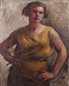 Huile sur toile, 93 x 74. Signée "F. Roland" en bas à droite. Dans un large cadre vieil argent. Peintre post-impressionniste de figures, nus, scènes de genre, etc., née à Liège en 1905 et morte en 1978. Crée des décors muraux ainsi que des décors pour la télévision. Elève à l'Académie de Liège (de Berchmans et Ochs notamment), elle voyage ensuite (Arto).