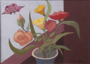 Edgar SCAUFLAIRE. Fleurs et papillon.