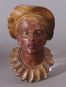 [TERRE CUITE]. Tête de jouvenceau tirant la langue. XIXème siècle.