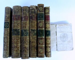 "Les Bigarrures du Seigneur des Accords 4e Livre", relié vélin d'époque, 1586 + (x6) volumes début XIXe sur les voyages, reliés d'époque