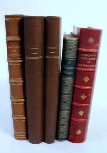 Ensemble de (x5) forts volumes fin XIXe, reliés d'époque sur les Arts: Watteau, Fragonnard, les estampes miniatures et la gravure