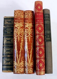 Ensemble de (x5) forts volumes fin XIXe, reliés d'époque sur les Arts et les voyages dont: Salons de 1836, 1883 + le Prado