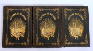 JUSTE, "Histoire de la Belgique depuis les Temps Primitifs jusqu'à la Fin du Règne de Léopold Ier", ensemble de (x3) volumes reliés d'époque, plats illustrés, 1868