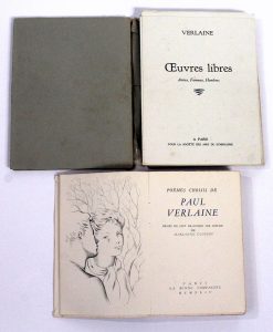 VERLAINE, "Poèmes Choisis de Paul Verlaine - Illustrés par Mariane Clouzot", tirage numéroté, 1944 + VERLAINE, "Oeuvres Libres - Amies, Femmes, Hombres", nombreuses gravures érotiques, l'un des 24 exemplaires numérotés sur vélin, avec (x1)...