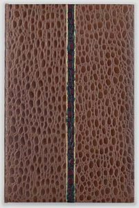 Apollinaire (Guillaume) et André Rouveyre. Vitam Impendere Amori. Poèmes et dessins. Paris, Mercure de France, 1917. In-8, veau fauve façonné en peau de reptile, bande verticale teintée et sertie de deux filets dorés traversant le centre des