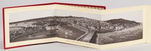 Album, in-12 oblong relié en plein cartonnage rouge, au premier plat titré. Illustré de 21 vues lithographiées et reproduites à l’aide d’un procédé de photogravure, dont 2 grands panoramas, présentées sous la forme d’un accordéon. Epoque 1890.