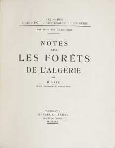MARC (H.). Notes sur les Forêts de l’Algérie.