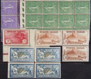 France : 2 albums de timbres-poste dont Yvert n°123 x 4, 230 x 3, 231 x 1, 234 x 16 sans charnière et divers.