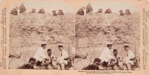 Tientsin (28), Pékin (25), autres localités (20) dont : Shanghai, Canton, Hankou, Hong Kong, Soo-Chow, Taku… Très bel ensemble en parfait état de vues par le photographe américain James Ricalton, correspondant de guerre en Chine de la firme Underwood & Underwood, au moment de la révolte des Boxers. Dimensions des vues stéréoscopiques : 9 x 17,8 cm. Dimension des épreuves albuminées montées par paires : 8,1 x 7, 8 cm. Légendes et localisations des vues : Une famille chinoise de haute caste, le Mandarin (maire) de Kinkow et sa jeune femme, ses fils et filles-Tientsin, Li Hung Chang, le plus grand vice-roi et diplomate de la chine (photographié dans son yamen le 27 sept.1900)-Pékin, Prince Ching commandant des gardes de la ville ami secret des légations pendant le siège, à présent commissaire de la paix-Tientsin, le plus grand des hommes d’état de la Chine, Li Hung Chang dans la cour de son Yamen-Pékin les Conseillers de l’Impératrice douairière en négociation avec les pouvoirs-Pékin, trône dédié au fils du ciel dans le Palais de l’Empereur -Pékin, Mlle Smith héroïne du siège et des réfugiés protégés, parmi les ruines des écoles de la Mission de Londres-Tientsin des chrétiens chinois réunis par le père Quilloux dans la mission apostolique pendant le bombardement-Pékin, prêtre Lama au grand temple de Tung-ho Kung-Hong Kong, Queen’s Road vue prise d’Ice-house road-Pékin, curieuse colonne et porte Ching-men entre les villes impériale et défendue-Shanghai, vue du sud du quartier français et de la ville indigène-Pékin, des chrétiens indigènes offrent un parasol au Dr Ament pour son héroïsme pendant le siège-Soo-Chow, point de repère d’une pagode bâtie il y a1600 ans-Canton vue du canal Shameen à l’intersection d’un canal-Tientsin tout ce qui reste de la Cathédrale française-Pékin, ville Tartare au nord de la muraille prés la porte Chien-men-Pékin, arcade prés du lac Palais Impérial d’été où les gouverneurs fameux de la Chine se délassent des soucis d’état-Pékin, vue d’un prêtre Lama tournant la roue d’un moulin à prière dans la cour du temple du Grand Lama -Pékin vue de l’ouest par dessus le domaine Impérial vers la pagode « White Ming »-Pékin, comme au temps de Confucius, vue d’une caravane de chameaux entrant dans la ville -Loong Wah,« Roi des mendiants », chef d’une guilde de mendiants fier de ses guenilles-Tientsin, la classe des ouvriers de Chine, une bande de coolies aux ordres des japonais, attendant des ordres sur le Bund-Soo-Chow,indigènes pêchant avec des cormorans dressés-Pékin, belle pagode en parasol, temple d’une des nombreuses religions de la Chine-Pékin, belle tour de porcelaine un des plus beaux édifices du Palais Impérial d’été-Pékin, magnifiques instruments astronomiques en bronze de l’observatoire-Pékin, vue de l’observatoire Impérial protégé du pillage par les alliés par le vaillant général Chaffee-Ningpo, au débarcadère au moment du départ du bateau à vapeur-Hankow, coolies déchargeant du thé-Canton, vue des maisons flottantes des 400 000 habitants du fleuve « Chukiang »-Pékin ,une place aux chameaux-Tientsin, au débarcadère transport par brouettes par les portefaix les meilleurs et les moins chers de Chine -Pékin, un marché dans la ville tartare-Pékin, marchés très fréquentés dans le quartier chinois sur la rue Kaiser-Soo-Chow, autrefois centre de la culture et du commerce chinois-Taku, vue prise de la tour Pilote vers le nord sur la rivière Peiho- Hankow, vue le long du Bund -Un des plus grands Cimetière chinois -Pékin, barbiers ambulants-Tientsin, effets du bombardement sur une tour dans le fort près de la cathédrale française-Shanghai, riches bazars indigènes sur la rue Nankin-Pékin, vue du nord de la Porte Ha ta men et vue du lieu du meurtre du ministre allemand le Baron Ketteler, appelé à présent rue Ketteler -Tientsin, arrivée du Comte Waldersee commandant en chef des alliés en Chine-Pékin, 9eme infanterie U.S. alignée devant la porte sacrée en l’honneur du comte Waldersee avec le Ministre Conger et sa famille au premier plan-Pékin, groupe des ministres des puis- sances étrangères pendant les négociations avec la Chine quittant la légation espagnole après une séance de travail-Pékin, le baron Moto Omi Yamuchi commandant des forces japonaises en Chine-Incendie de Tongu, le « Monacacy » vaisseau de guerre des Etats unis au débarcadère, un trou à l’avant fait par une bombe chinoise-Tientsin, troupes anglo-chinoises transportant les blessés pendant la bataille- Tientsin avancée des alliés qui montent un des terribles canons Lyddite pour bombarder la ville-Tientsin ,vue des soldats japonais sur la muraille à South Gate immédiatement après la prise de la ville- Tientsin, horreurs de la guerre : des chinois morts flottent dans le Pei-ho devant des édifices criblés le long du Bund français-Tientsin, canons destructeurs du vaisseau le « Terrible» de sa Majesté-Tientsin ,vue prise du nord depuis South Gate par dessus la ville en feu après son occupation par les alliés-Tientsin ,gare de chemin de fer ,wagons brulés pendant la bataille-Tientsin, les alliés occupent la ville, soldats français sur le Bund- Pékin, lanciers du Bengale revenant de la réception chez le Comte Waldersee- Tongu, destruction de la ville, des russes démolissent des maisons de boue qui pourraient abriter des Boxers-Tientsin, train rempli de chevaux du 1er régiment des lanciers du Bengale-Tientsin, Seiks bombardant la position chinoise avec un canon anglais de la marine-Tientsin, vue vers l’est prise depuis la porte méridionale le long de la muraille à l’extérieur-Tientsin ,après la prise de la ville on brule des cadavres chinois à la porte méridionale-Tientsin ,étrange mélange de plusieurs nations venant chercher de l’eau à la pompe publique pendant l’occupation étrangère -Tientsin, m