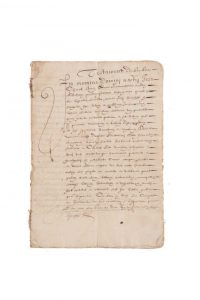 brune sur papier vergé. Porte une annotation à l’encre sur le dernier feuillet blanc de la main de la personne qui trouva ce manuscrit au xviiie siècle: « Ce testament s’étant trouvé parmi les papiers du Sieur Bouriany ancien Notaire et praticien de Tarascon qui fit héritiers de 120000 livres les deux hôpitaux, je me fit remettre par les recteurs cet instrument qui se serait perdu leur étant inutile. Le mois de juillet 1740 ». Déchirures et manque sur le plat inférieur. Le 22 juillet 1474, le roi René lègue, par son troisième testament, l’Anjou et la Provence à son neveu, Charles Iii du Maine ainsi que le duché de Bar à René Ii de Lorraine, un fils de sa fille Yolande d’Anjou. Après avoir été informé de ce testament, le roi Louis Xi étant lui-même son neveu fait occuper le duché, le 31 juillet 1474, sous prétexte de l’absence d’héritier mâle direct. Intéressante copie ancienne faite à Arles par deux Notaires Royaux un peu moins de 150 ans après le testament original.