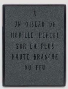 Flamand (Charles). à un oiseau de houille perché sur la plus haute branche du feu. Lyon, Les Écrivains réunis,Armand Henneuse, [1957]. In-4, box noir, plats recouverts de papier abrasif noir, titre mosaïqué de même en léger relief sur le
